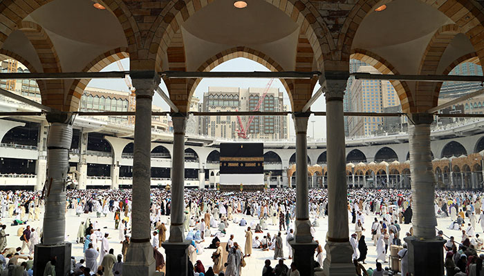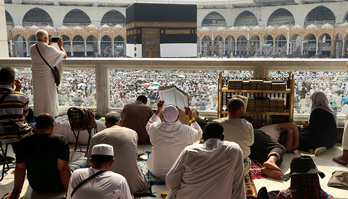 As temperatures exceeded 40C (105F), pilgrims crowded into Mecca's sprawling, air-conditioned Grand Mosque complex to walk around the Holy Kaaba.