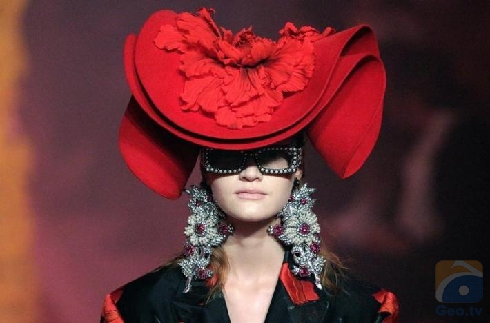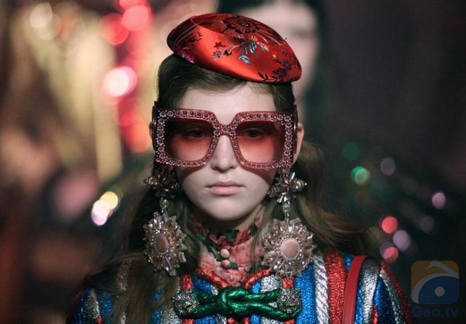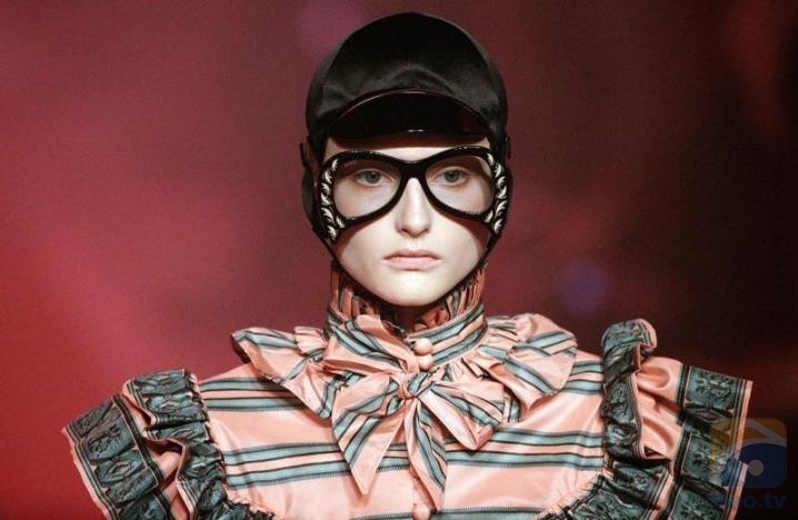 Many wore glittered glasses or intricate fascinators and turbans, with studded platforms on their feet, in creative designer Alessandro Michele's fourth women's collection since being appointed in January last year.
