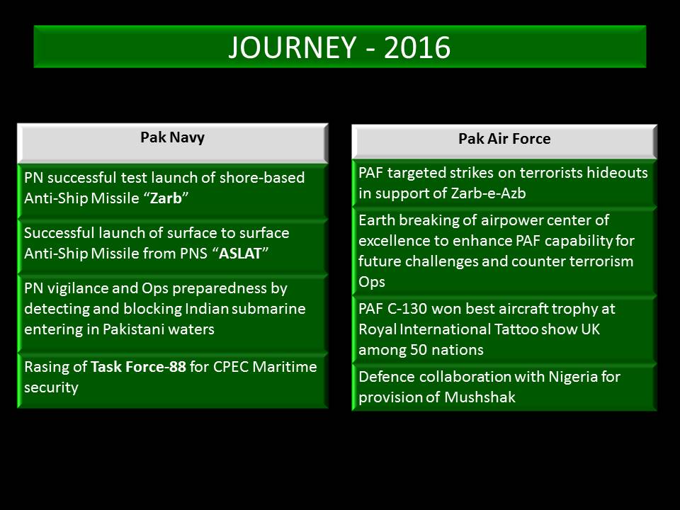 Below are some noticeable events from year 2016 that ensure an impregnable Pakistan: