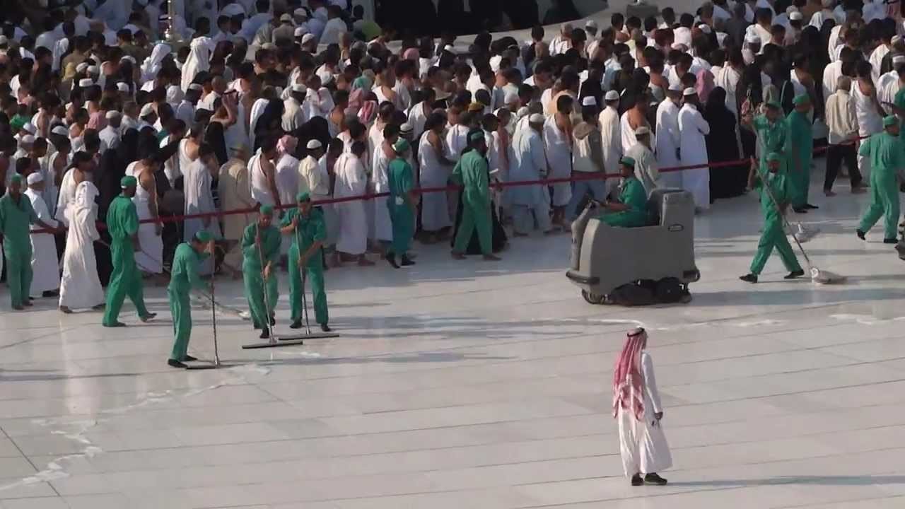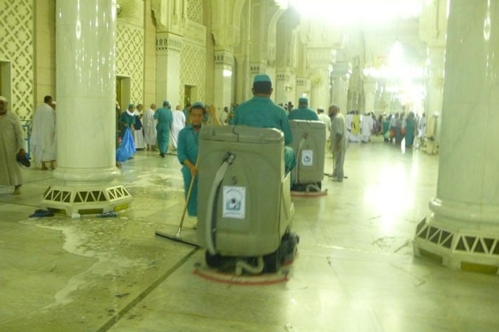 According to Al Arabiya News, 1,245 employees work around the clock to clean the Grand Mosque and offer services to the pilgrims, coming from across the globe. The number increases to 1,715 during Ramadan and the Hajj season, while the number of female workers increases from 210 to 341.