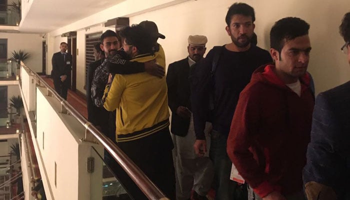Later, Peshawar Zalmi owner Javed Afridi welcomed the players on their arrival at the hotel.