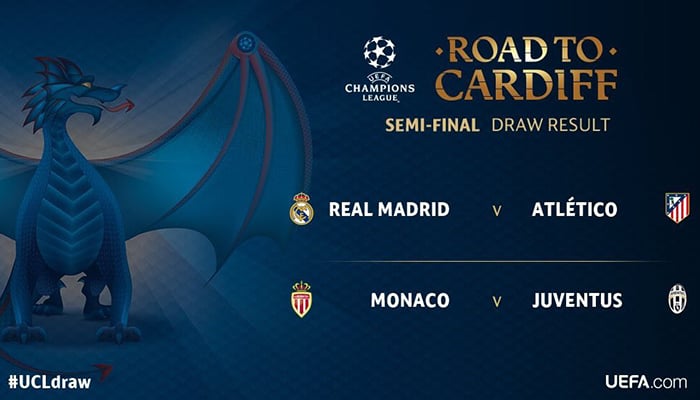 Real will host Atletico at the Santiago Bernabeu on May 2 and Monaco are home to Italian champions Juventus on May 3, with the second legs the following week.