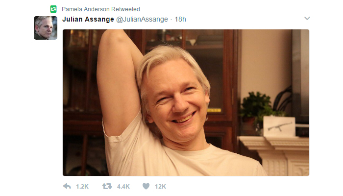 Baywatch actress Pamela Anderson retweeted a smiling selfie of Julian Assange on Friday after Sweden dropped its investigation into the Wikileaks founder, reviving intrigue around the couple's rumoured romance.
