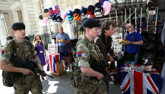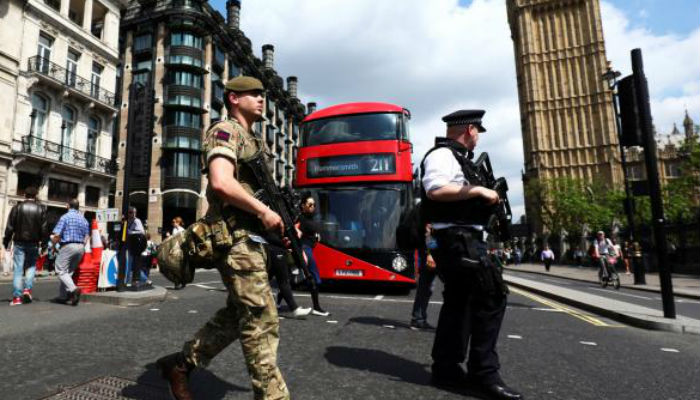 Soldiers were seen at the Houses of Parliament, May's Downing Street residence and at the London police headquarters at New Scotland Yard.