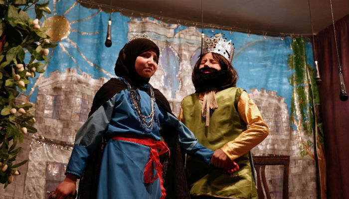 The all-girl cast spent months memorising lines from the classic Brothers Grimm fable before performing in front of a packed audience this week in the elementary school in Douma.