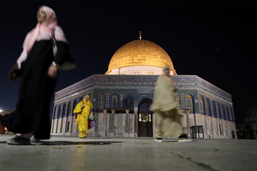 Muslim women walk in front of the Dome of the Rock on the compound known to Muslims as al-Haram al-Sharif and to Jews as Temple Mount, in Jerusalem´s Old City, May 9, 2017. REUTERS/Ammar Awad