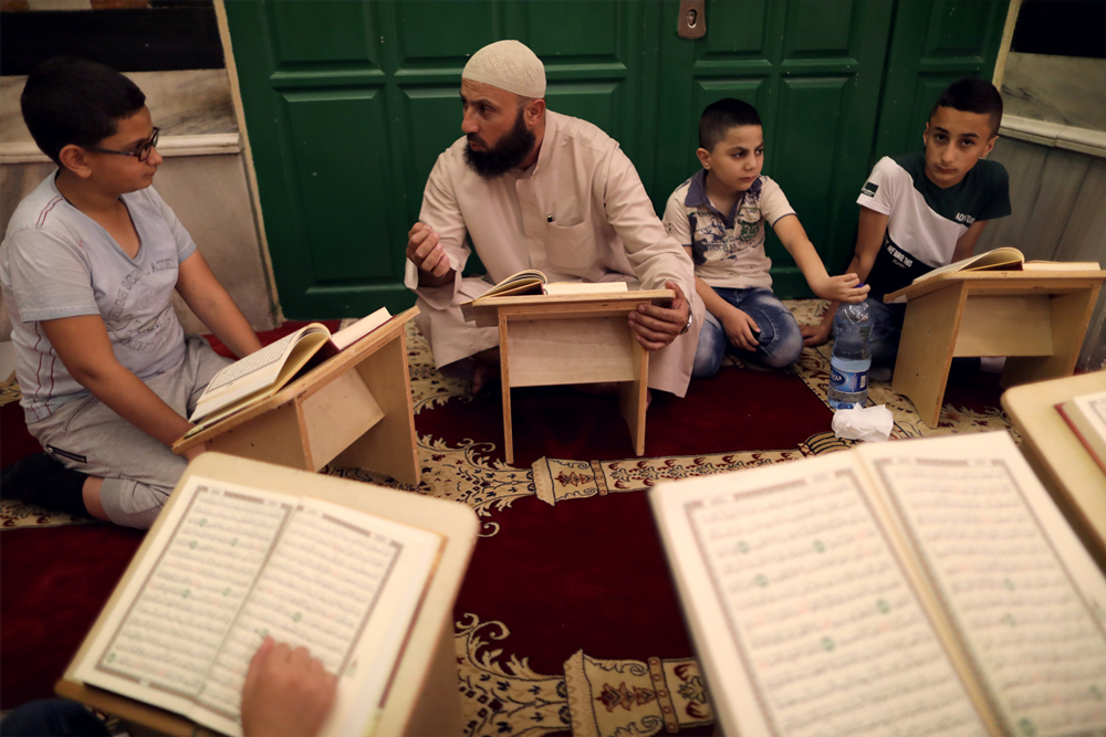 A Palestinian Sheikh teaches children to read the Koran inside al-Aqsa Mosque, on the compound known to Muslims as al-Haram al-Sharif and to Jews as Temple Mount, in Jerusalem´s Old City, May 17, 2017. REUTERS/Ammar Awad