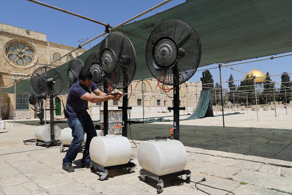 Palestinians employed by the Waqf, the Islamic trust that oversees the mosque and the ancient compound that surrounds it, set up tents for fasting worshippers to take a respite from the heat alongside the golden Dome of the Rock, the site where the Prophet Mohammad is said to have ascended to heaven.