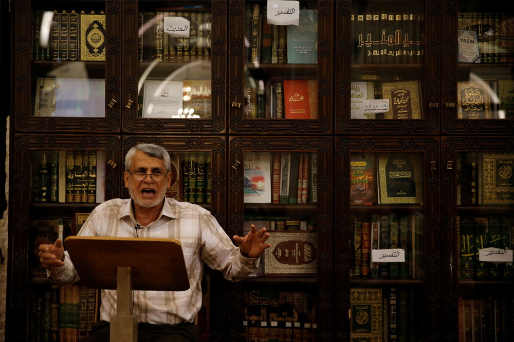 A Palestinian Sheikh gives a lesson about the Koran inside al-Aqsa Mosque, on the compound known to Muslims as al-Haram al-Sharif and to Jews as Temple Mount, in Jerusalem´s Old City, May 17, 2017. REUTERS/Ammar Awad