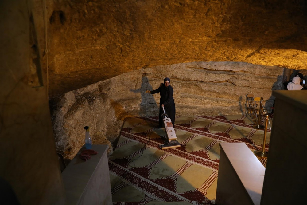 An employee of the Jordanian Waqf, or Islamic trust, that oversees the area, cleans during preparations ahead of the Muslim holy month of Ramadan, in the Dome of the Rock located on the compound known to Muslims as al-Haram al-Sharif and to Jews as Temple Mount, in Jerusalem´s Old City, April 19, 2017. REUTERS/Ammar Awad