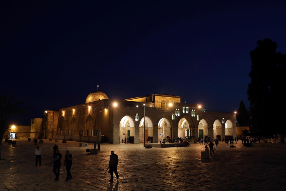 Visitors walk past al-Aqsa Mosque at night on the compound known to Muslims as al-Haram al-Sharif and to Jews as Temple Mount, in Jerusalem´s Old City, May 9, 2017. REUTERS/Ammar Awad