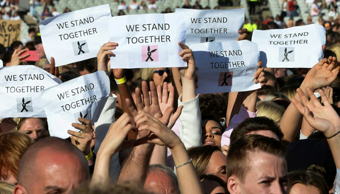 MANCHESTER: Cheers drowned out tears in Manchester on Sunday as Ariana Grande was joined by fellow music stars for a charity concert where fans vowed to face down fears of terrorism after two deadly attacks in Britain.