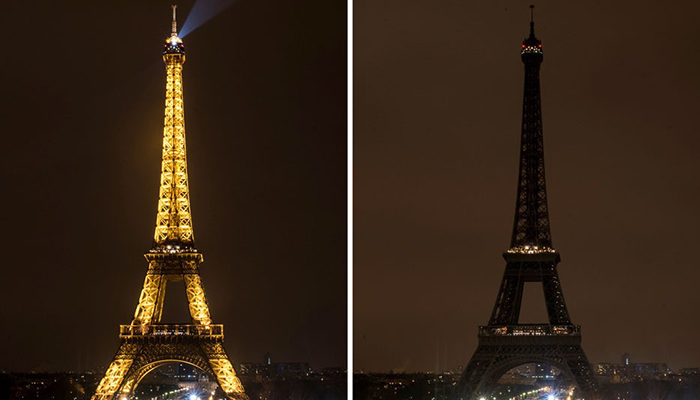 The Paris landmark has been switched off twice already this week, once for the victims of suicide blasts in Baghdad that killed at least 42 people and most recently to honour the 90 people killed in a huge truck bomb in Kabul.