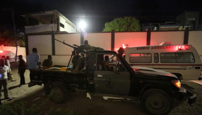 MOGADISHU: Gunmen were holding at least 20 people hostage in a restaurant in Somalia's capital Mogadishu on Thursday, police said, after a suicide bomber rammed a car next door and militants stormed inside in an attack claimed by Al Shabaab militants.