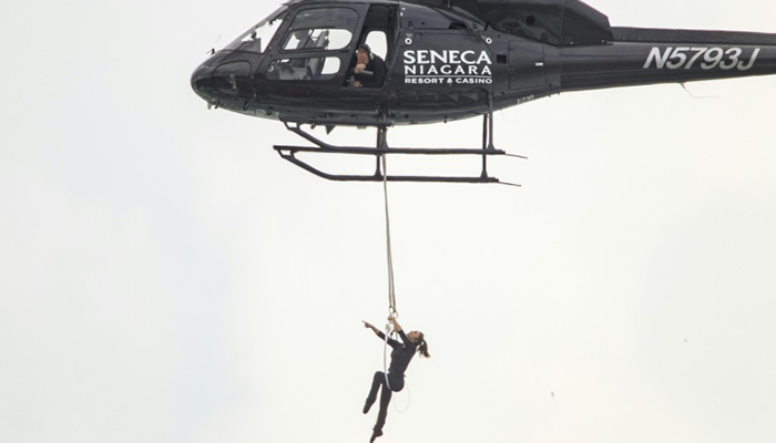 American daredevil Erendira Wallenda dangled from her teeth from under a helicopter in a series of eye-watering acrobatic moves over the teeming waters of Niagara Falls on Thursday.