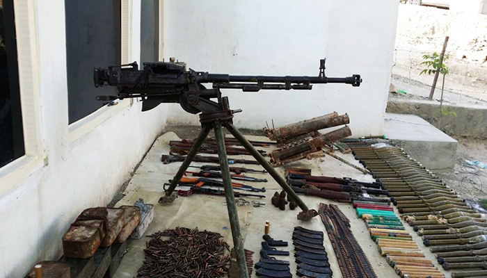 Recovered weapons included 12.7mm heavy machine guns, sub-machine guns, missile launchers, RPG-7 rocket launchers and ammunition of various calibres.