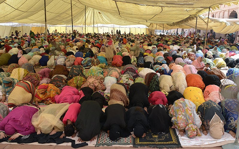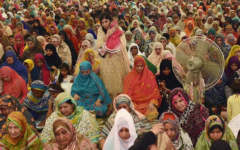 Muslim women offer Eid al-Fitr prayers at the Badshahi Mosque in Lahore on June 26, 2017.—AFP photo