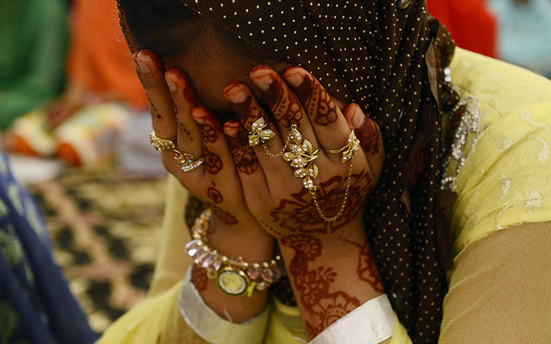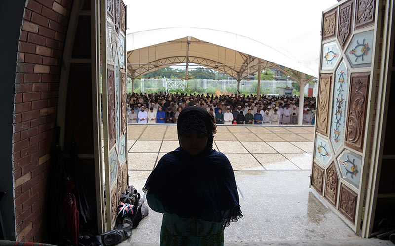 A young Muslim girl offers Eid al-Fitr prayers along with others at a mosque in Islamabad on June 26, 2017.—AFP photo