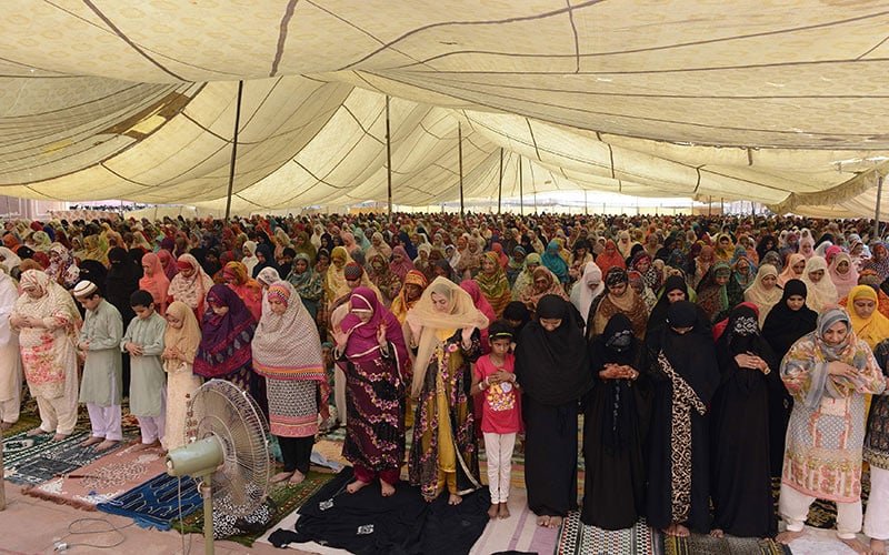 Muslims offer Eid al-Fitr prayers along with others at a mosque in Islamabad on June 26, 2017.—AFP photo