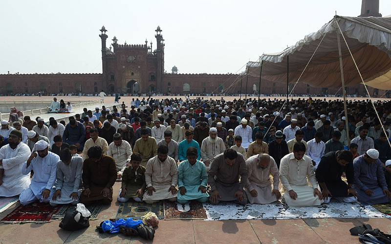 Muslim men offer Eid al-Fitr prayer at the Badshahi Mosque in Lahore on June 26, 2017. —AFP photo