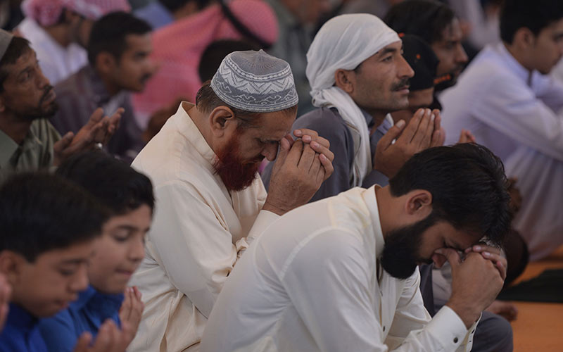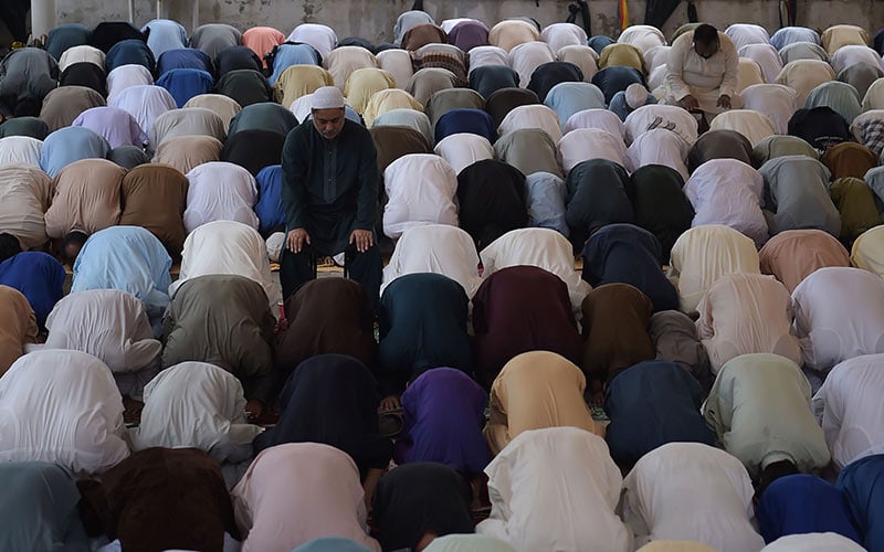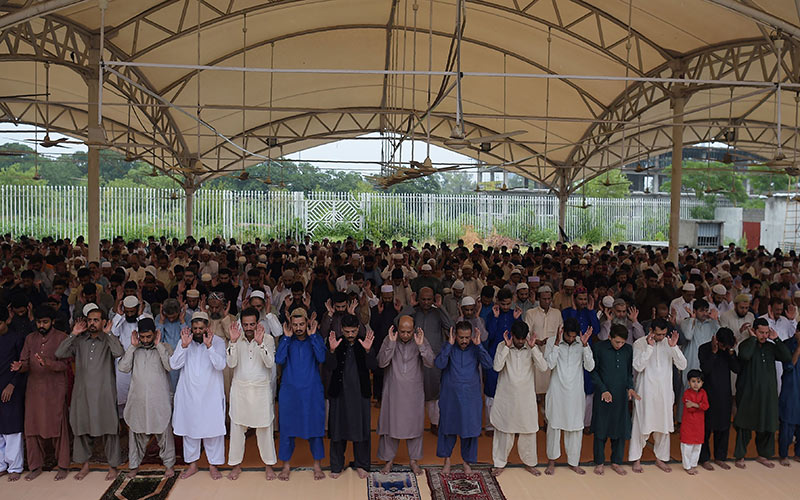 Muslims offer Eid al-Fitr prayers at a mosque in Islamabad on June 26, 2017.—AFP photo