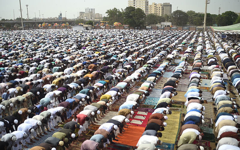 Muslims offer Eid al-Fitr prayers at an Eidgah ground in Karachi on June 26, 2017.—AFP photo