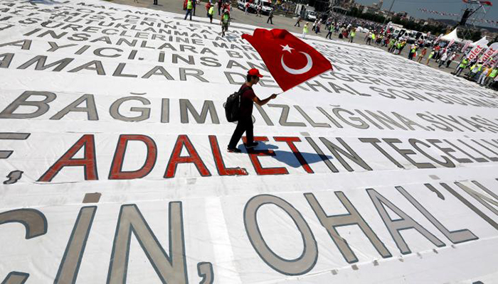 Addressing hundreds of thousands of people waving Turkish flags and banners demanding justice, Kemal Kilicdaroglu said his 25-day march from Ankara to Istanbul - culminating in Sunday's rally in Istanbul - was the first stage of a long campaign.