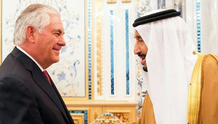 Tillerson flew into Saudi Arabia where he met King Salman and Crown Prince Mohammed bin Salman, whose country leads a four-state alliance that has cut ties with Qatar over accusations it supports extremism.