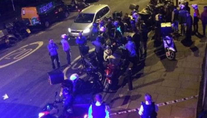 One of the victims had been on a moped when two assailants pulled up alongside him in another moped and threw a corrosive substance in his face, the Metropolitan police said. One of the pair then stole the vehicle.