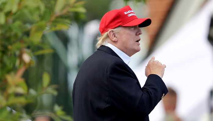 BEDMINSTER: US President Donald Trump watched Saturday's third round of the US Women's Open tournament from a glass-enclosed viewing area at the 15th hole of his Trump National golf resort.