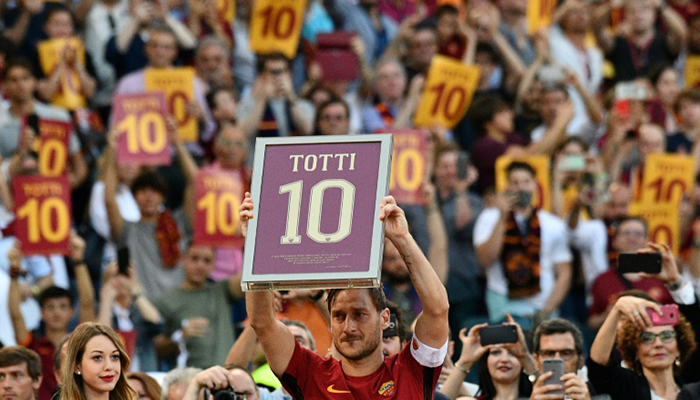 Totti played 786 matches for Roma in total after joining as a schoolboy in 1989, scoring a club-record 307 goals, and won the 2006 World Cup with Italy.