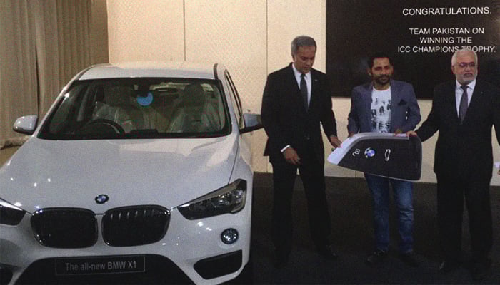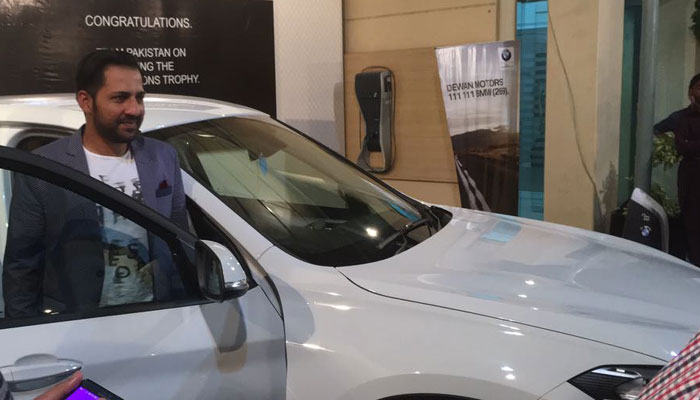 A brand new BMW XI was handed over to captain Sarfraz Ahmed in a ceremony held Thursday in Karachi. The car was announced by JS Bank and Dewan Motors earlier in a special episode of Geo's Ramzan show Geo Khelo Pakistan.
