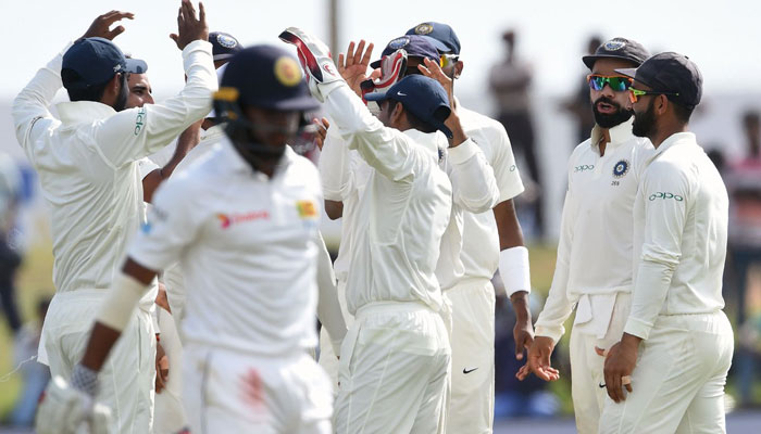 Earlier, paceman Nuwan Pradeep clinched his maiden five-wicket Test haul, putting the brakes on India´s free scoring.