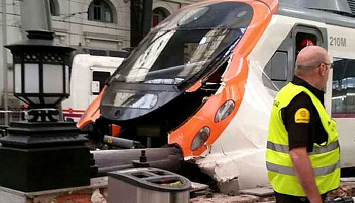 BARCELONA: A commuter train slammed into the end of the platform during the morning rush hour at a busy station in Barcelona on Friday, leaving 54 people injured, emergency services said.