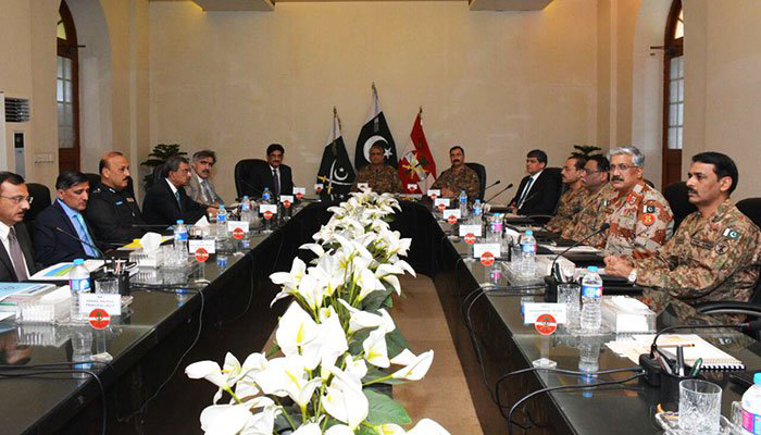 The meeting was chaired by Chief of Army Staff General Qamar Javed Bajwa who expressed satisfaction on the improvement of law and order in the metropolis.