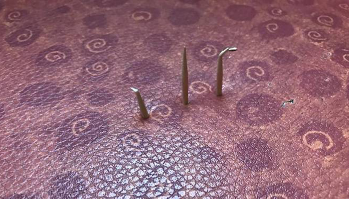 Pictures of three toothpicks sticking up from the seat were posted last month by a Facebook user, who said she noticed them just as she was about to sit down.