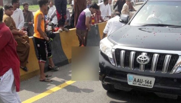 Chughtai, a student of grade 6, was standing on the lane-divider to watch Nawaz's convoy pass by when he was reportedly pushed towards the road moments before the Elite Force vehicle passed.