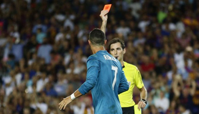 MADRID: Cristiano Ronaldo was hit with a five-match ban by the Spanish football federation (RFEF) on Monday for pushing the referee after being sent off in Real Madrid´s 3-1 Spanish Super Cup, first leg win over Barcelona.