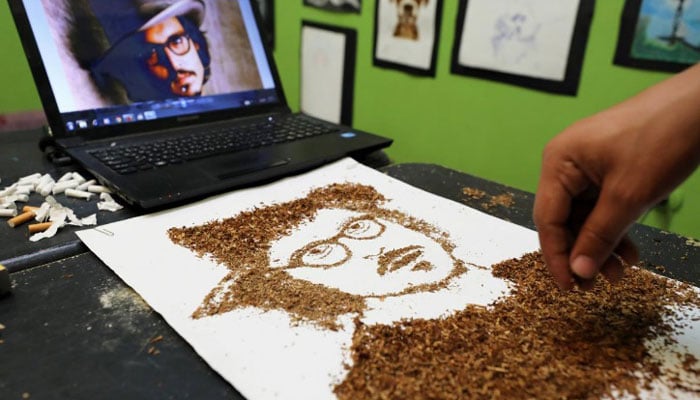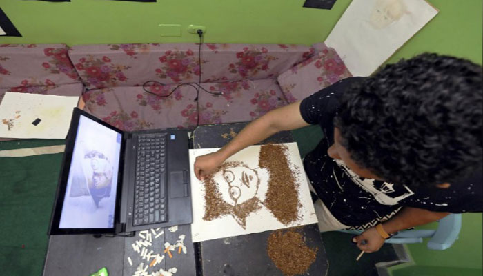 ALEXANDRIA: In a small studio littered with empty cigarette packets in Egypt's second city, Alexandria, Abdelrahman al-Habrouk sits hunched over a sheet of paper making portraits with tobacco.