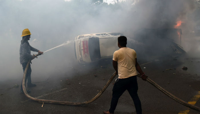 Supporters rampaged in response, attacking railway stations, petrol stations and television vans in towns across the northern states of Punjab and Haryana, witnesses said.