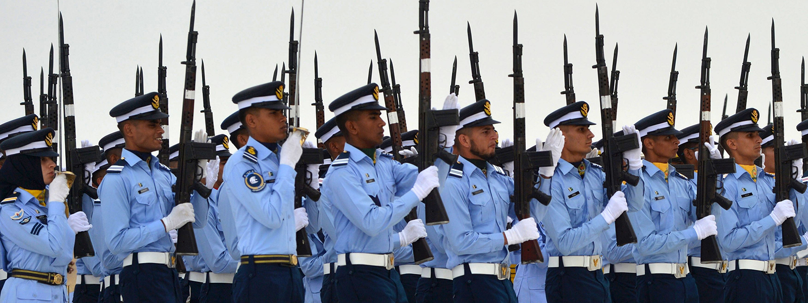 Members of Pakistan´s air force stand in position as they recite national anthem during Defence Day ceremonies, or Pakistan´s Memorial Day, at the mausoleum of Muhammad Ali Jinnah in Karachi - Reuters