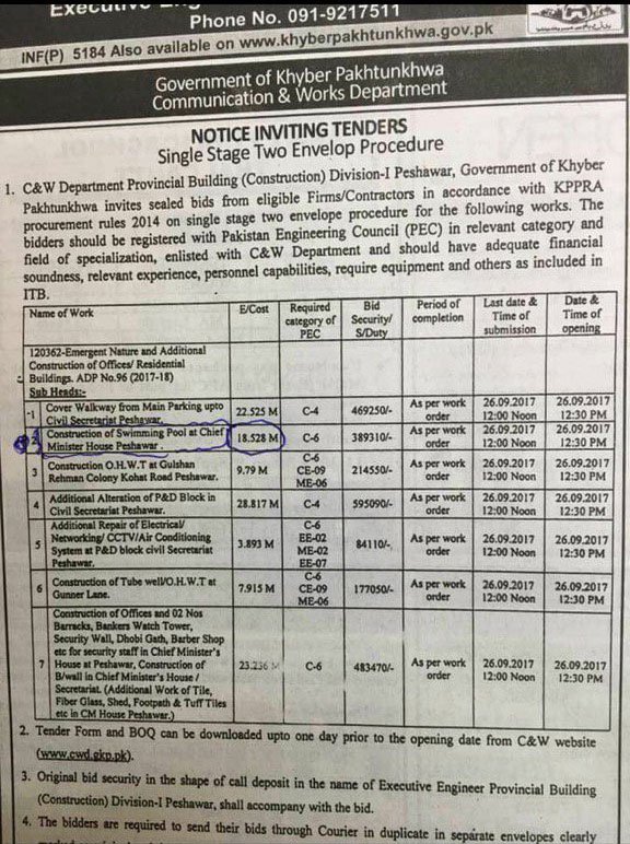 The pool will be built at an estimated cost of Rs18.528 million. A tender for the construction of the pool was also posted in newspapers.