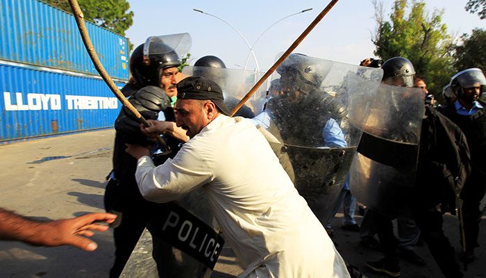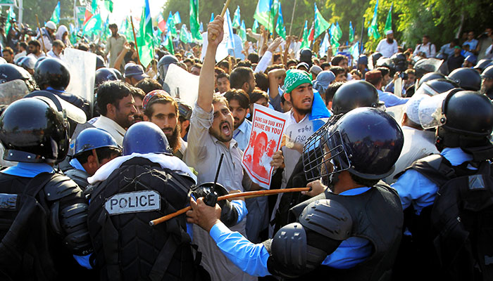 Interior Minister Ahsan Iqbal, in a statement, urged protesters to remain peaceful, saying the sanctity of the Red Zone should be respected.