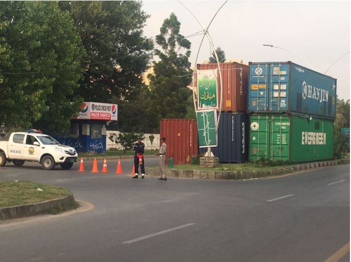 The capital’s administration blocked all entry routes into the Red Zone to avert any potential move by the rally’s participants to enter the Red Zone, which houses the Diplomatic Enclave as well.