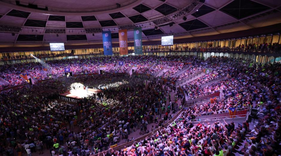 Crowds filled a bull ring in the northeastern city of Tarragona, applauding and shouting “We will vote!” as regional president Carles Puigdemont arrived to rally support for the Oct. 1 vote.