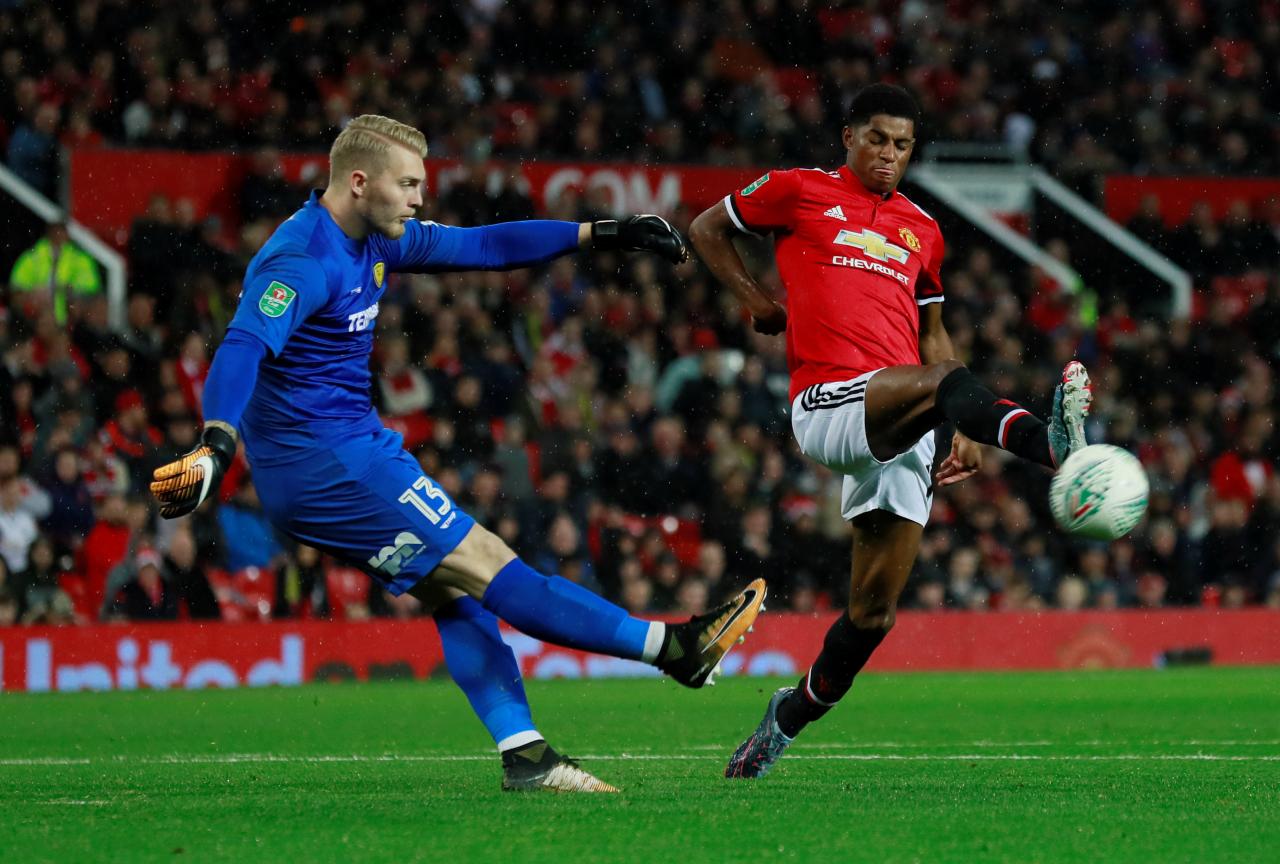 Marcus Rashford scored twice as holders Manchester United brushed aside second-tier Burton Albion 4-1 at Old Trafford to reach the fourth round of the League Cup on Wednesday.
