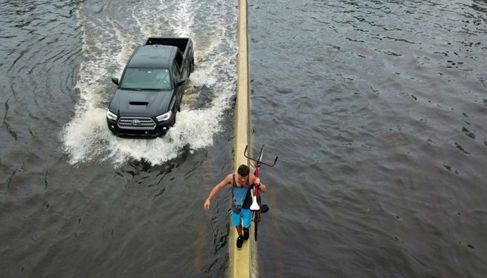 Some people have ventured out to try to clear roads that are not flooded but rather just blocked with rubble or trees.