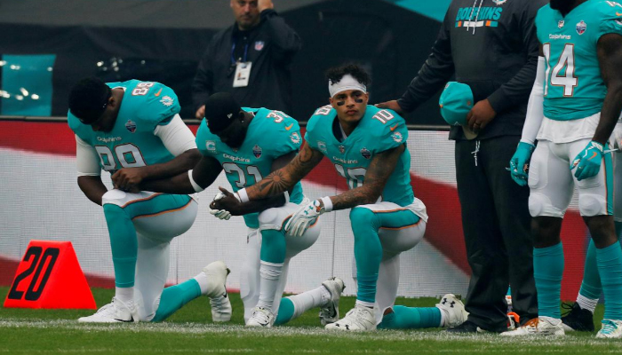 LONDON: Three Miami Dolphins players knelt for the American national anthem before their NFL game in London on Sunday, after U.S. President Donald Trump had said the previous day that it was “very important” that players stood.
