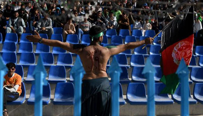 They waved the Afghan national flag and chanted songs for Khan, some showing their devotion by painting his name on their bodies.