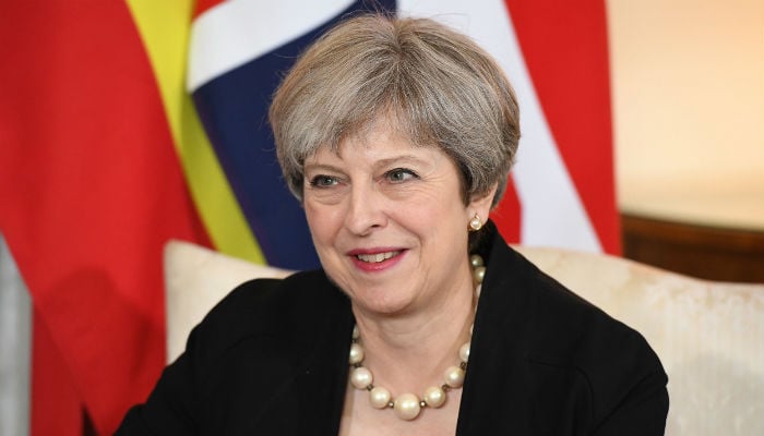May seemed unruffled by the interruption, which came just as she was turning to speak about the opposition Labour leader.